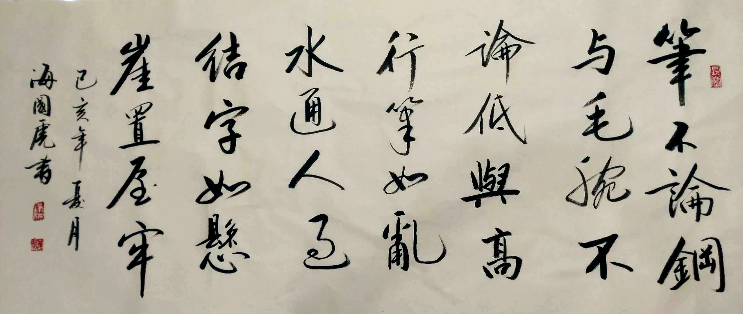 对于还未及古稀的海先生而言,当前的状态可以说正值一位书画家的“壮年时期”。技法足够成熟,心性亦很平稳。他的执着精神更在推动着他习研无止的步履。相信,在未来书画坛,观者便能领略到其又一破陈出新艺术至境!