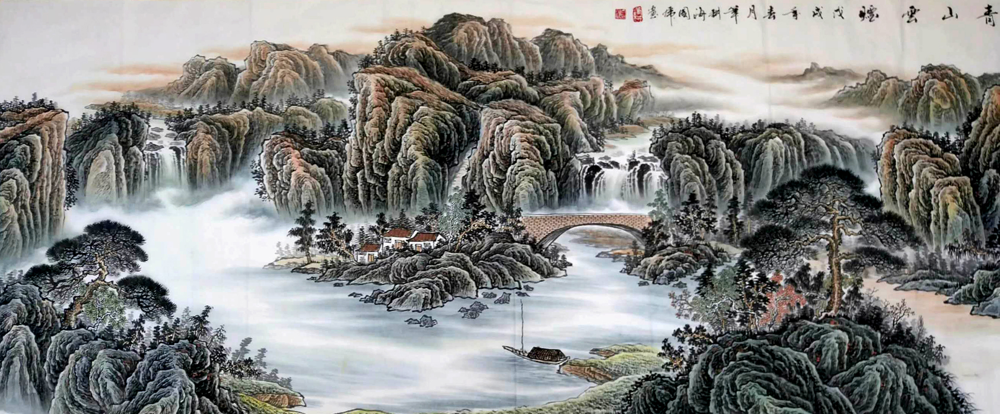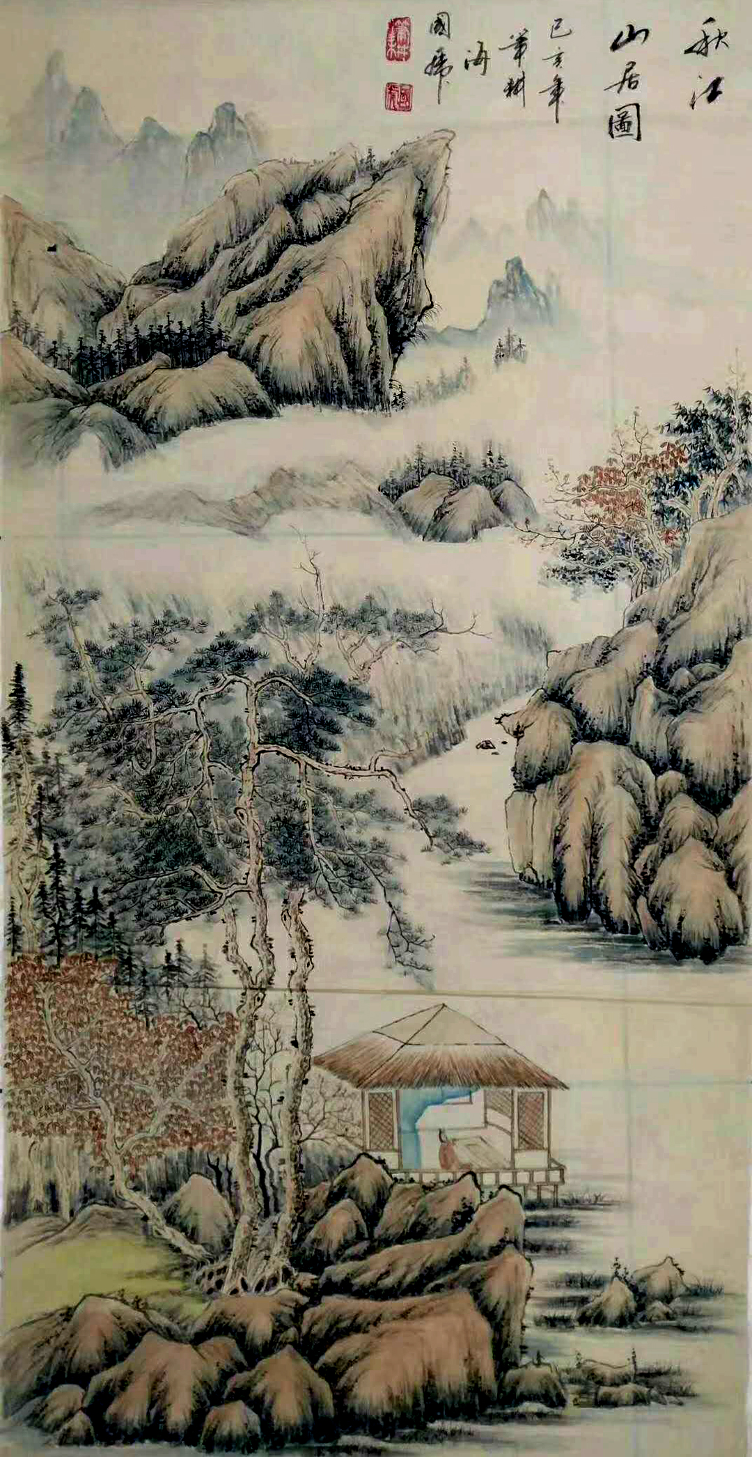 系统的研习,加之海国虎谨细的心神和认真的态度,让他很快就领悟到了学研之核要,他秉承严守传统之步伐,沉心潜性,心无旁骛,深索古法精妙。他深知,这个学习的过程,犹如树之扎根,越是沉潜则愈发根深蒂固,才能为将来的枝繁叶茂打下坚实基础。“学习书画,临摹是必须的功课,对古人技法的揣摩和掌握,对古画气韵的感受和呈现都要做到宏观和微观上的读解。这是必经之路,不能逾越,更不能有丝毫懈怠。传承的功课做得越好,支撑创新的底蕴就越深厚。”