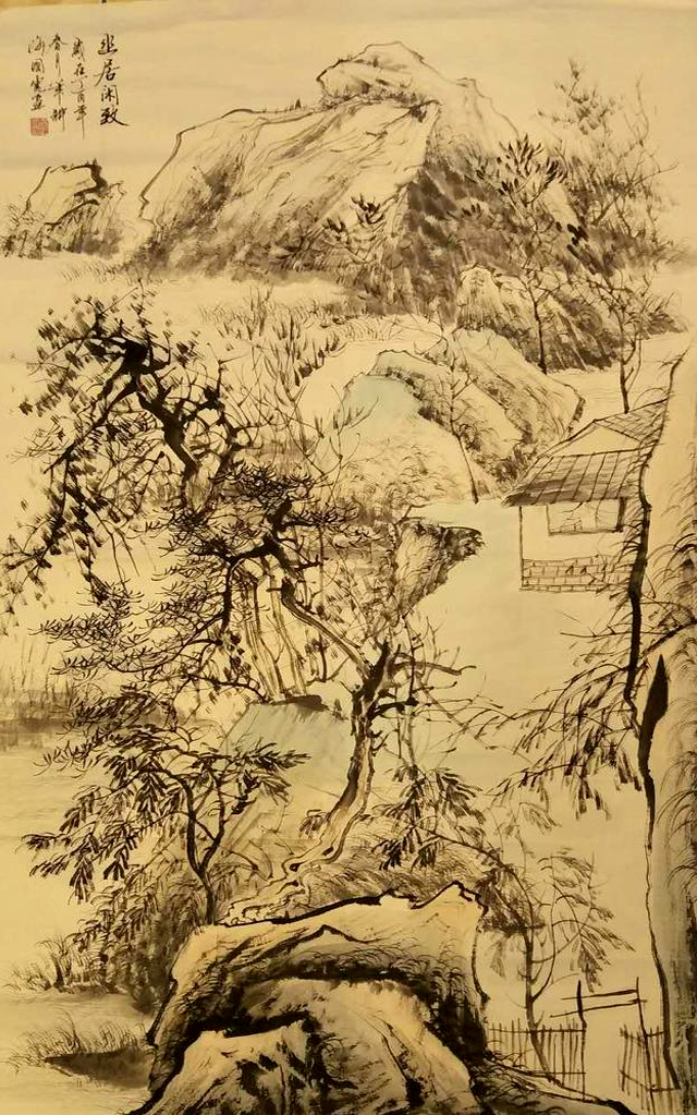 回忆起初会书画之魅时的印象,虽然早已时过境迁,但海国虎仍然难掩兴奋。儿时一次偶然的机会参观画展,他就被一幅山水画韵致深深吸引,他魂灵深处的艺术天赋似乎就在那一刻被激活。自此以后,从小学涂鸦到中学正式研究书画,他都始终孜孜不倦,乐此不疲。虽然,其书画之研一度被文革的到来所打断,但这却未能动摇他笃爱书画艺术的拳拳之心。