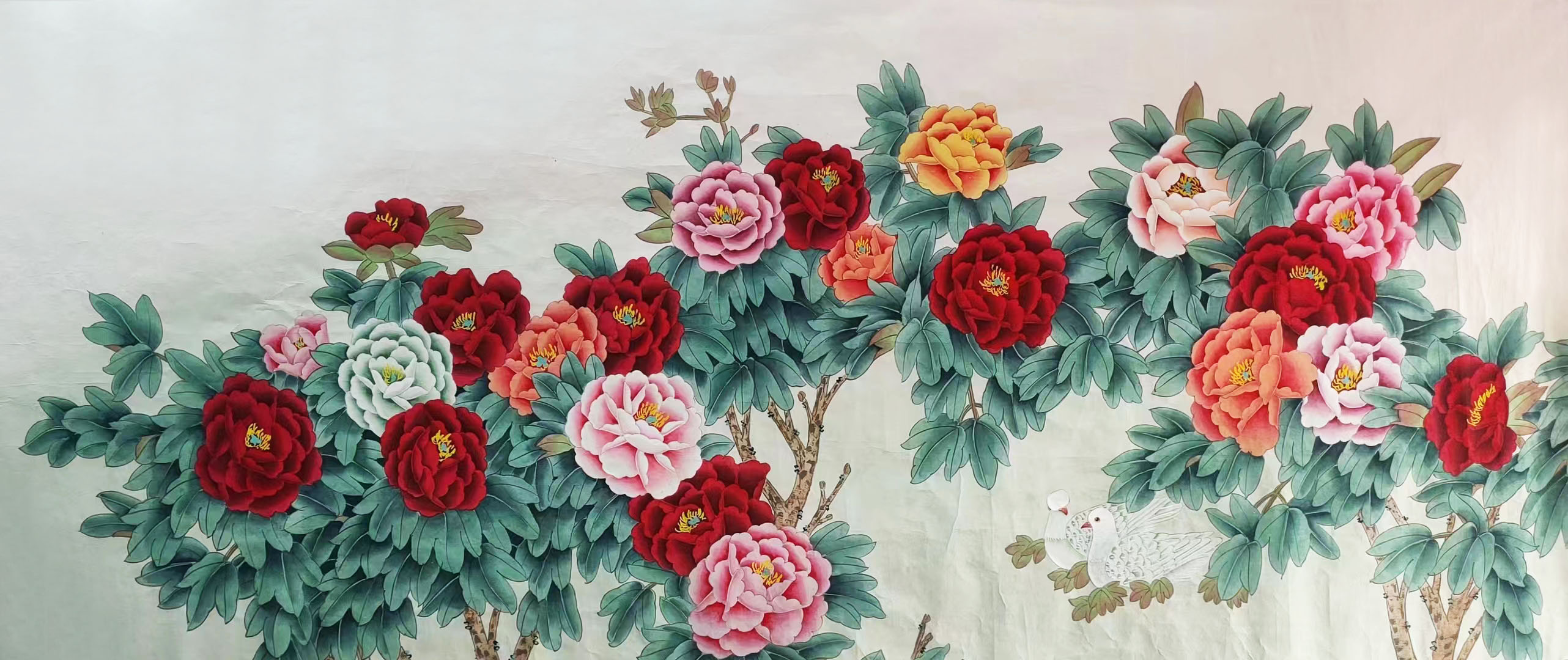 王砚农,生于1950年,祖籍河南郑州,现居北京。早年就读于河南轻工业学院艺术系,后研修于北京画院,深得诸名家之教诲,主攻山水、花鸟、人物,尤善牡丹,其作品风格苍劲古朴,雍容典雅,阿娜多姿,用色、湿润亮丽,其工笔写意千层金线牡丹更是用笔飘逸洒脱,色彩典雅,富丽堂皇,雍容华贵,备受画坛同仁推崇,有“牡丹王”美称!