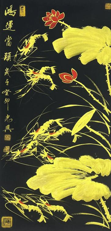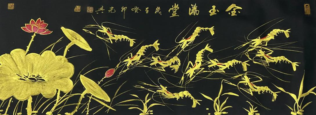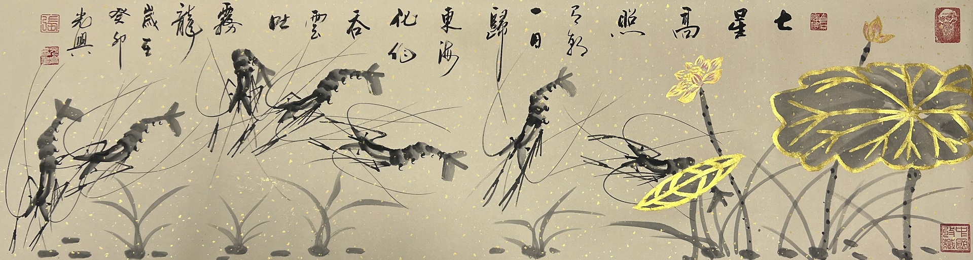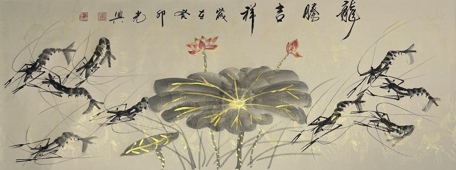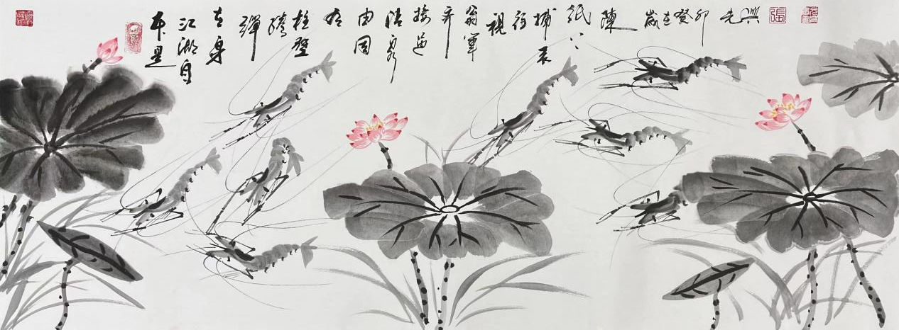 国画作品《百虾图—十米长卷》