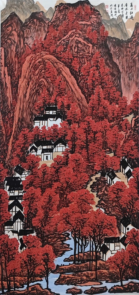 2013 年,作品《江山万里红》入选中美协举办的建党 95 周年全国美术作品展