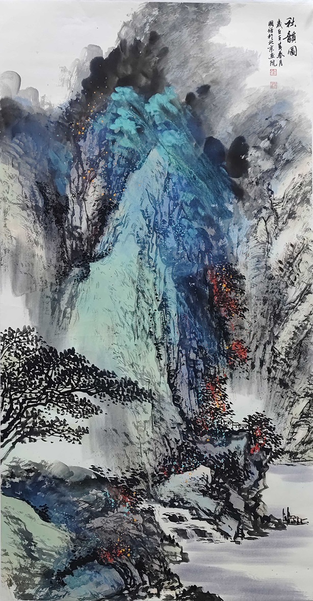 2015 年,作品《江山行舟》入选丹青郑州·第二届中国画作品展