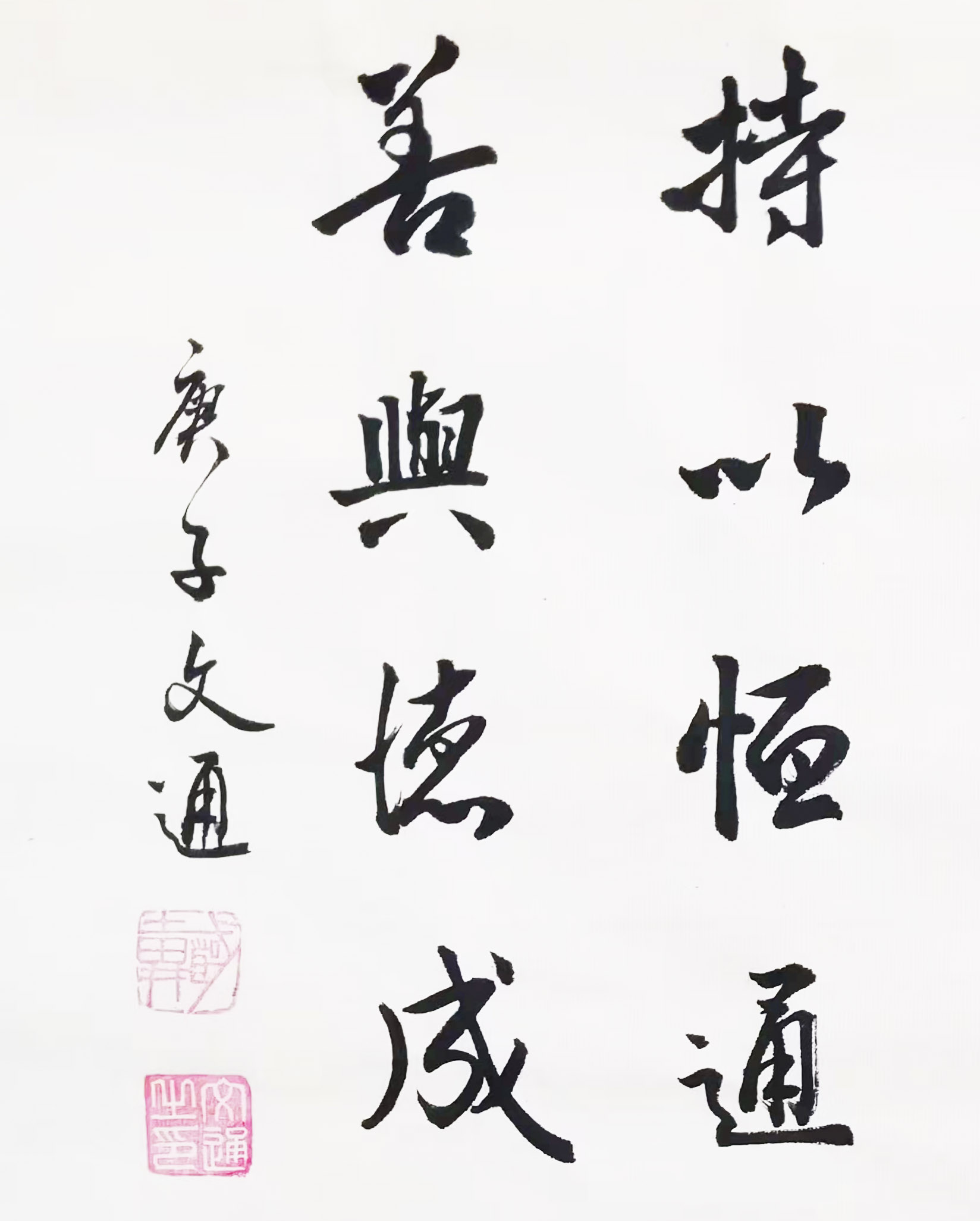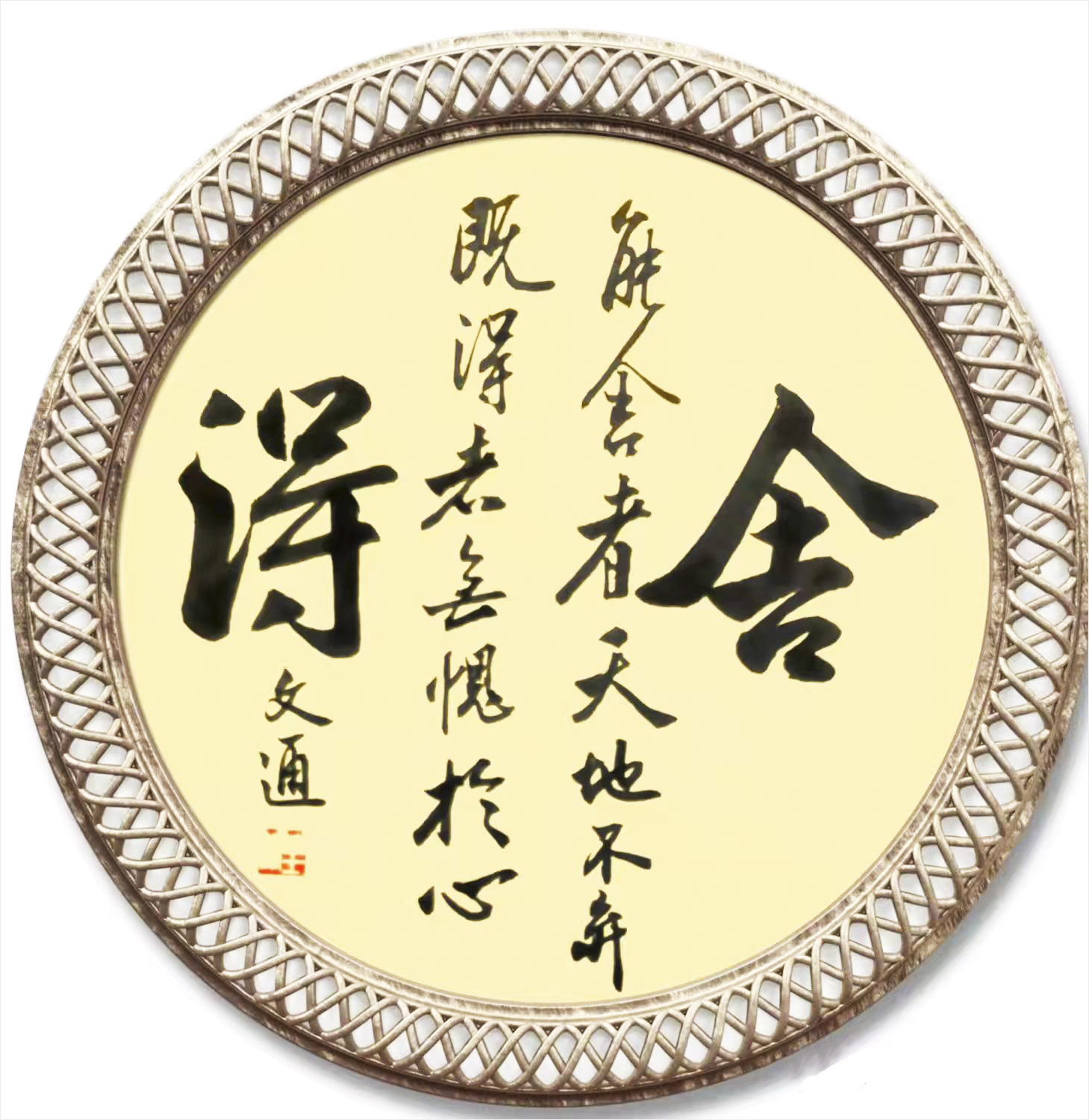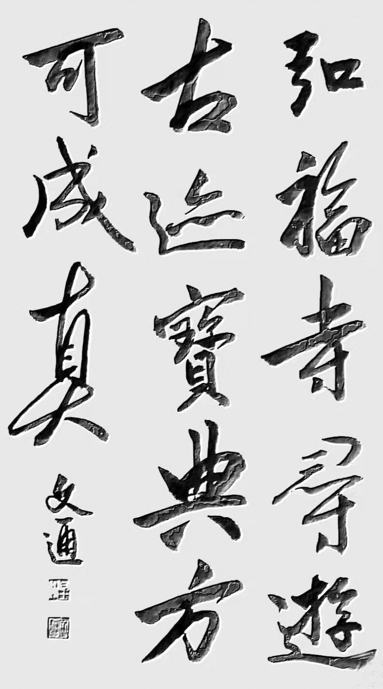 文通先生自幼忠爱书法,醉心书道数十年。其作品,运笔流畅、章性洒放、风格独特,稳健中渗透着洒逸气韵。笔力充沛、正而不板、宕逸多姿、独树一帜,大气磅礴既有欧阳询之“险”,又有顏真卿之“厚”,更显二王书法风味之韵。字体结构雄伟豪放,笔画精细点点俱到,着墨圆润细腻,运笔灵动巧妙,字字错落有致、气神贯通,韵味雅致,具有极高的欣赏价值,沉着苍劲,雅俗共赏,从点画、字形都呈现出独有的艺术魅力!