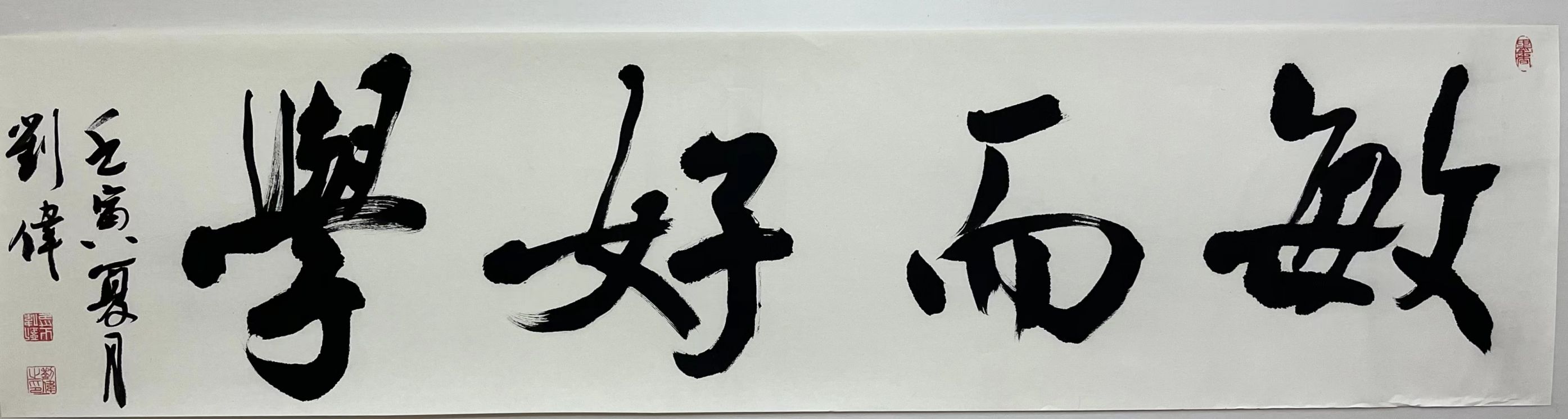 刘伟先生承家学自幼爱好书画,学书刻苦,自颜入手,通临百家,其意临行书《兰亭集序》被中书协多位名家和学者题跋,赞誉为当代《妙笔兰亭》称号; 刘伟先生绘画融汇南北画派,笔墨清秀,布局舒朗。亦工写人物,笔简意赅,饶有意趣。其花鸟写意,洒脱秀逸。单就题材来看,绘画主要有山水画、人物画、花鸟写意画等。院体画派及笔法严谨雄浑、风骨奇峭的风格。专注于仿古山水画和金线山水画。画面布局严谨整饬,造型真实生动,山势雄峻、石质坚峭、皴法斧劈、笔法劲健、墨色韵味为一体,超凡脱俗;对自然山川有着身临其境的真实感受,刘伟先生尤专梅花,笔墨清秀,布局舒朗,得法王来根先生。