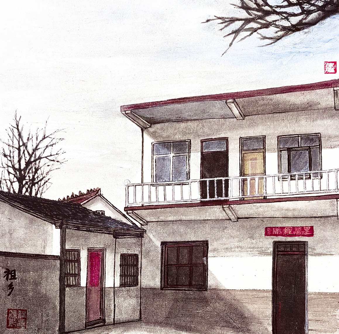 乡土题材是汪章雁艺术创作的核心板块,也是其情感寄托的重要载体。《故里冬日》《腊月柴门待归人》《祖乡村广场》《诗意徽乡》等经典作品中,他用平常笔墨勾勒出故乡的宁静与温情,冬日村舍、腊月柴门、祖乡广场,每一处景致都承载着浓烈乡愁,写绘的不只是故乡的外在风貌,更是骨血里的眷恋与牵挂。他用最平实的艺术语言,将乡村文化传承的执着和故土家园的热爱融入笔端,让作品充满情感温度,成为引发观者情感共鸣的泉源,也让中国水墨画在当代焕发出别样的生命力。