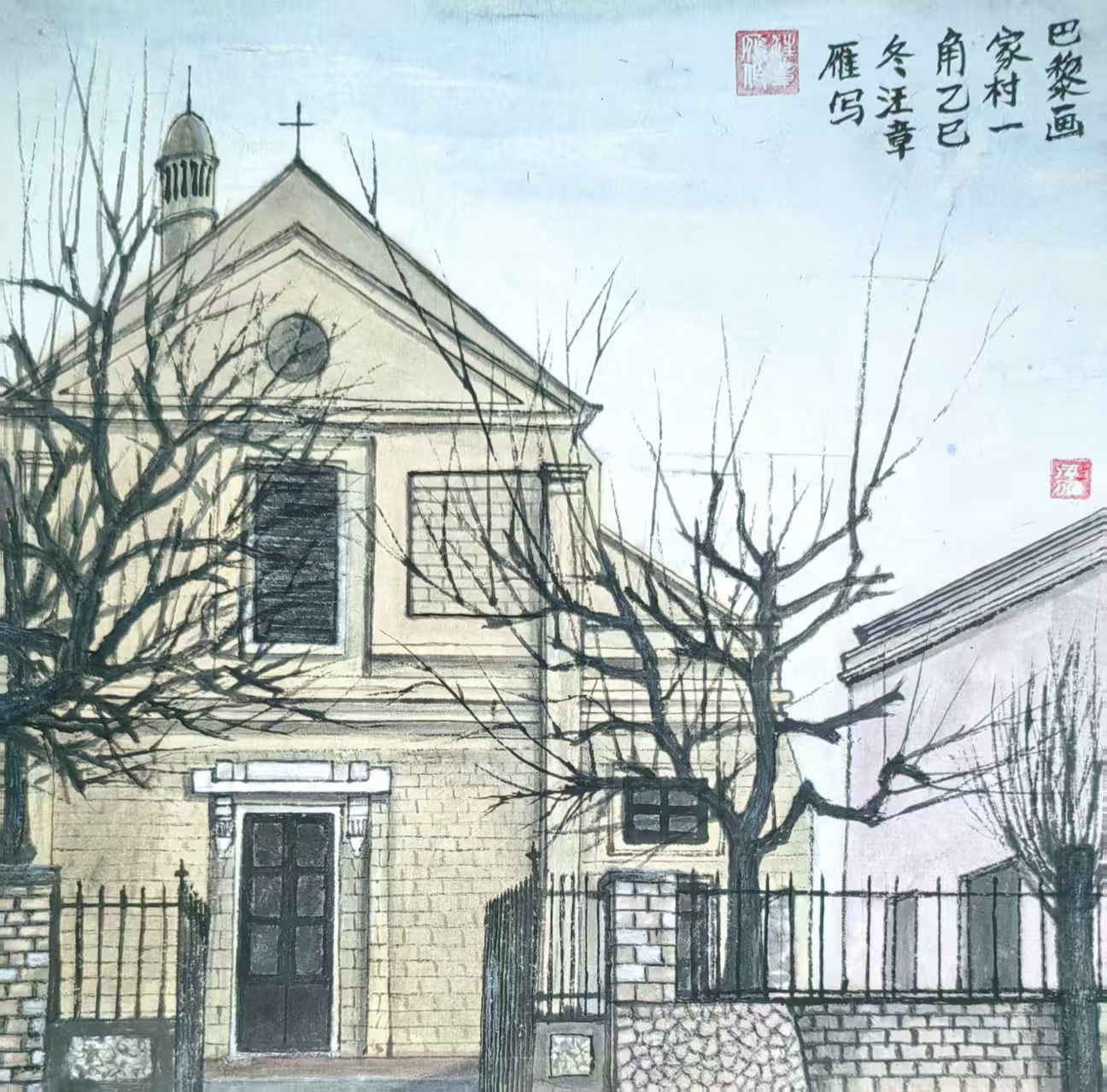 在跨地域创作中,他精准捕捉不同地域的艺术特质:面对阿尔卑斯山的冷峻风光,以焦墨硬朗勾勒峰峦轮廓,淡墨晕染云海层次,融入西方油画的色彩冷暖关系,凸显自然的雄奇与苍茫;置身巴黎画家村,以细腻笔触捕捉古墙的质感与老树的虬曲,兼顾写实造型的精准与水墨写意的灵动;回归江淮故土,将村落一角、蜿蜒的圩堤以及水乡泽国的氤氲水汽融入笔墨,让地域文脉在水墨语言中重生 。这种“以景载情、以形写神”的创作路径,打破了东方水墨与西方写实的语境壁垒,构建起兼具民族性与世界性的艺术语言。