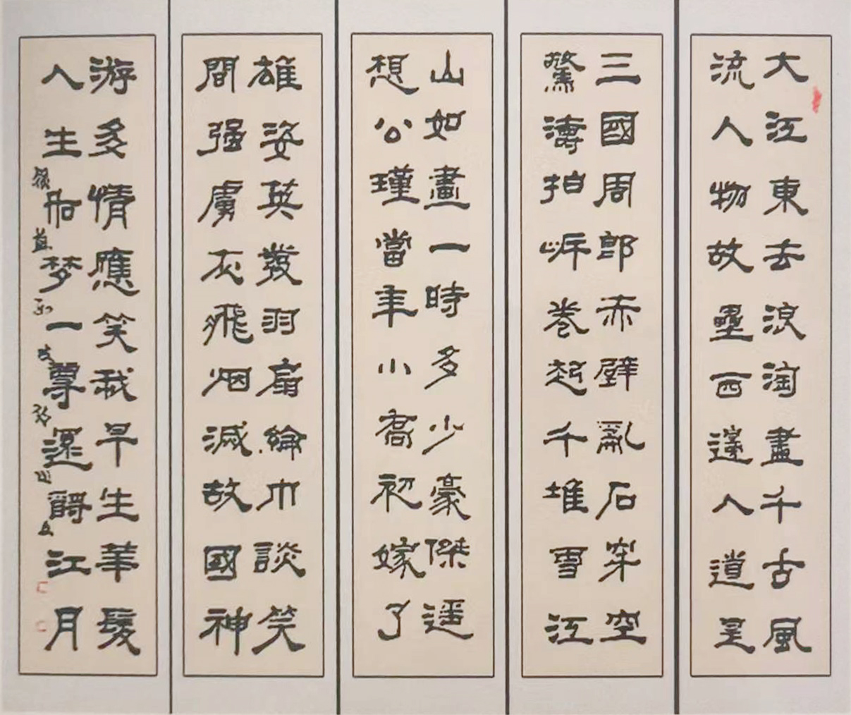 闵文 大江东去隶书五条屏