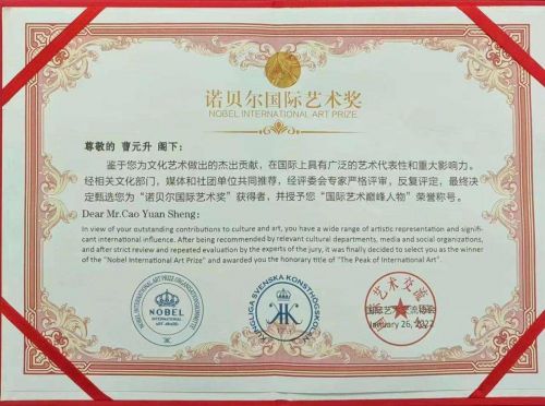 2022 年在诺贝尔国际艺术奖组委会、瑞典皇家美学院、国际艺术交流协会、巴黎国立高等美术学院、意大国际艺术协会、俄罗斯列宾美术学院、英国皇家艺术学院多个国际组织特举办得“诺贝尔国际艺术奖”评选活动中曹元升荣获“诺贝尔国际艺术奖”并授予诺尔奖章。